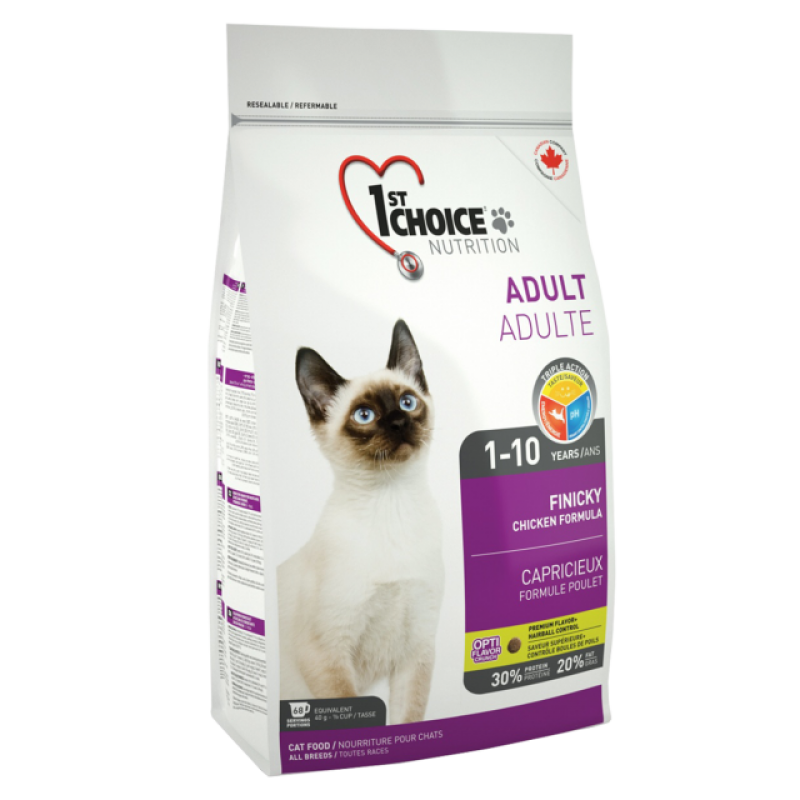 1st Choice FINICKY формула специально создана для привередливых взрослых кошек с нормальной активностью и избирательным вкусом.Это самая привлекательная по вкусу формула из всех, которые мы когда-либо делали.