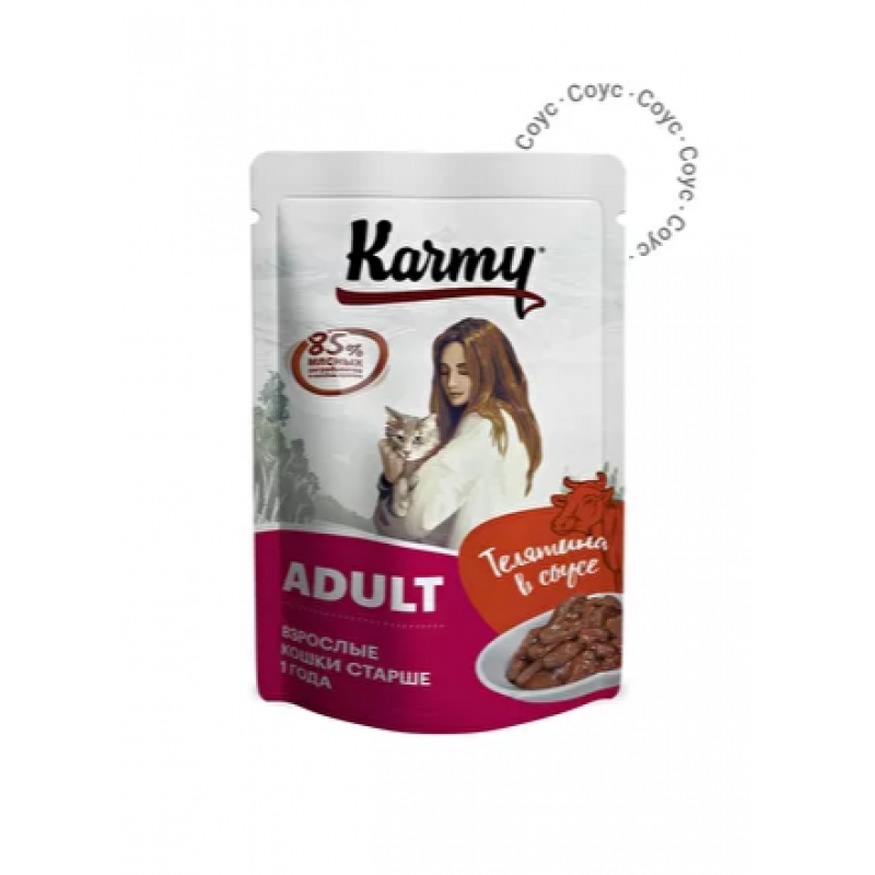 Karmy Adult - это порция сочных мясных кусочков в ароматном соусе, приготовленных с учетом индивидуальных потребностей взрослых кошек всех пород старше 1 года. В составе корма только натуральные ингредиенты, а также все необходимые микроэлементы и витамины для поддержания здоровья и полноценной жизни вашего любимца.