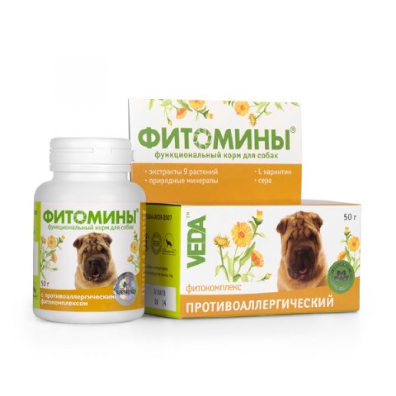 VEDA Фитомины с противоаллергическим фитокомплексом для собак: 100 таб